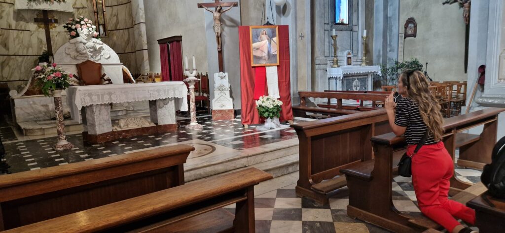 Les cuento que frente a la fuente hay una pequeña iglesia, así que entramos a conocerla, ocasión y lugar indicado para elevar una oración por Marcella y sus hijos.