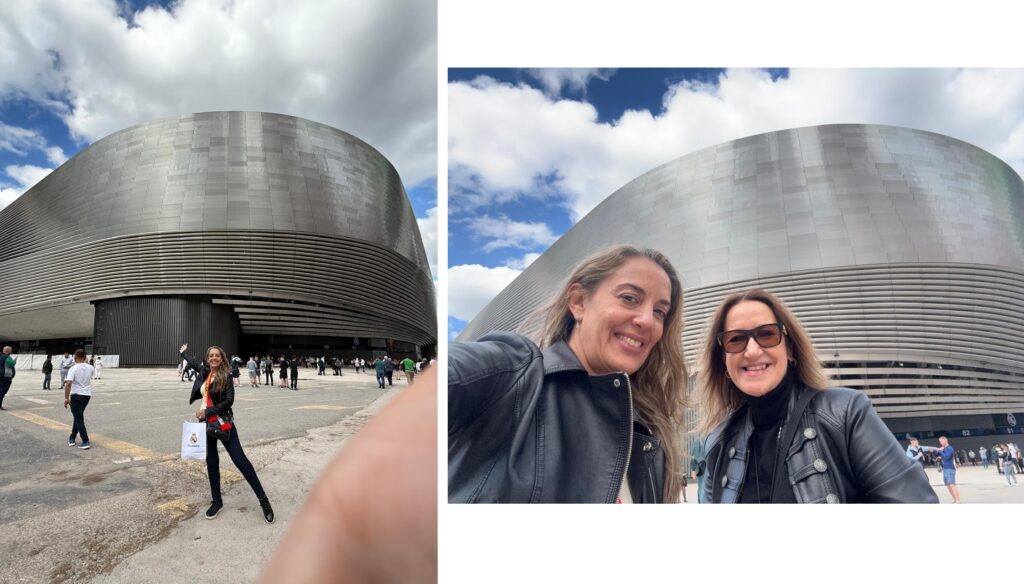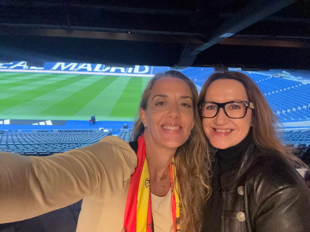 Luego del desayuno partí en bus hacia Madrid, esta vez con una dificultad extra porque debía hacer trasbordo, pero con la ayuda de la tecnología me fue de maravilla. Me bajé frente al estadio a la hora pactada. Qué alegría conocer a Juani, con quien estoy en contacto desde hace dos décadas prácticamente. Fue súper emocionante poder abrazarla, platicar tantísimas horas, y disfrutar de un banquete para reinas en aquel restaurante.
