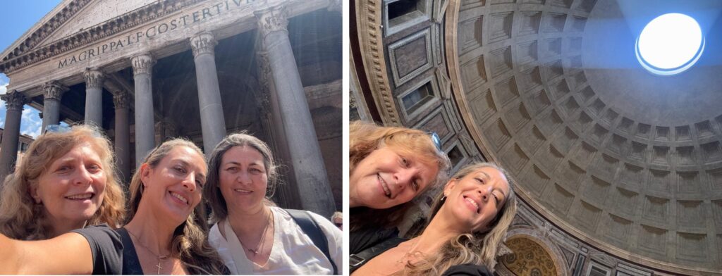 Como era feriado por el día del trabajo, Cristina pudo estar conmigo en todo momento. Salimos hacia El Pantheon para encontrarnos con Silvia, otra fan italiana amorosa, y allí nos tomamos un rico capuchino en una de las cafeterías más famosas, La casa del café, premiada con la taza de oro, que está situada enfrente. Luego hicimos la visita a este lugar histórico de una belleza arquitectónica extraordinaria, cuya cúpula es la principal maravilla de la ingeniería romana. Quedé fascinada con el óculo, ese gran agujero en el vértice de la cúpula que permite la entrada de luz natural.