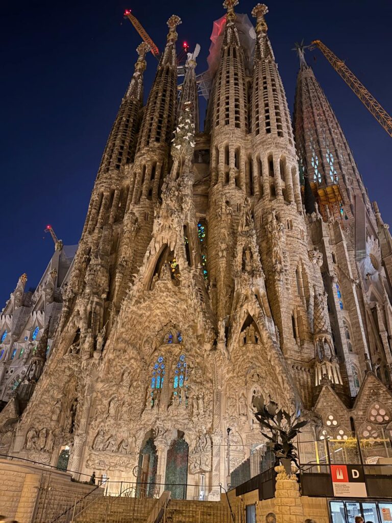 Lamentablemente la oscuridad de la noche estaba asomándose, y debía apresurarme si quería cumplir otro sueño, el que albergaba mi corazón desde hace años: conocer La Sagrada Familia. Después de algunas vueltas extras, por ciertas dudas en la ruta, llegamos a un estacionamiento a metros de aquella monstruosa obra maestra de la arquitectura. Realmente no existen palabras que puedan describir la belleza y la perfección en cada detalle, sin dudas esta Basílica, además de ser declarada Patrimonio de la Humanidad, debería formar parte de las maravillas del mundo. Me quedé obnubilada fotografiándola desde todos los ángulos, y muy agradecida a Dios por la posibilidad de cumplir un sueño más.